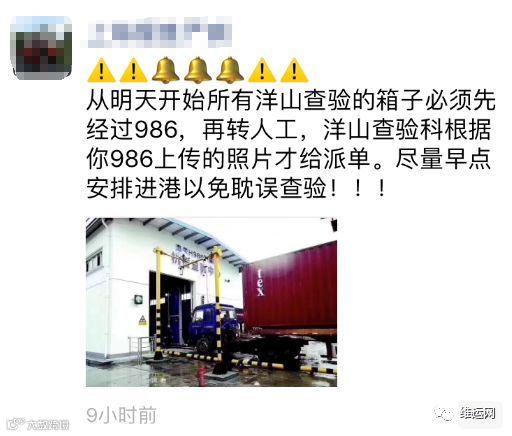 有从洋山出口计划的货代货主们注意了!2019年6月19日起洋山出口的箱子将必须先过H986机检。提醒大家尽量早点安排进港,以免耽误查验,延误出货。