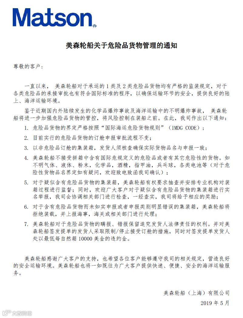 此前,部分班轮公司已发布通知,重申杜绝危险品瞒报。
