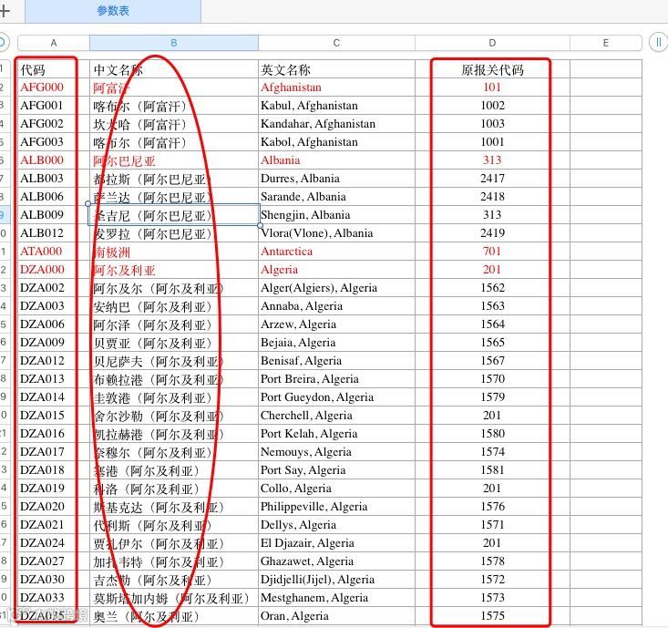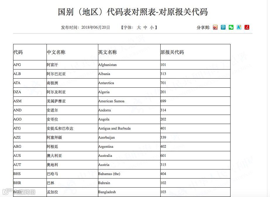 【国别(地区)代码表】原数字代码变更为英文代码,也可输入中文国家名称。