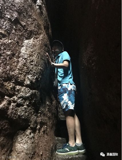 在伏羲洞中观赏一线天,沿石罅右行约数十步,就可以折入风洞。源鑫同仁们相互搀扶,团结互助,最窄处,须手脚并用,侧身而过...