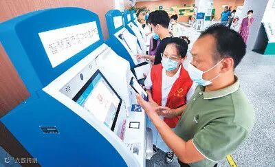 居民在浙江省湖州市吴兴区人民医院使用智慧医疗多功能自助机支付医药费。新华社记者 徐 昱摄