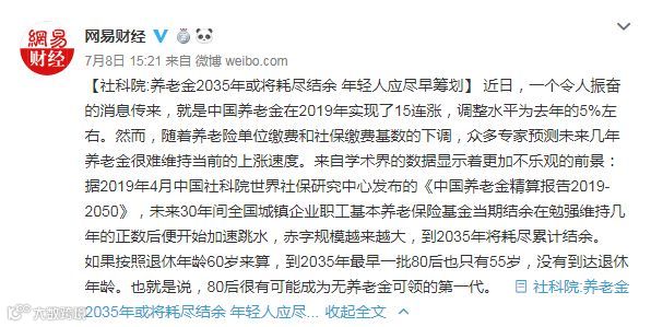 近日,网上流传“养老金到2035年将耗尽结余,80后很可能无养老金可领”的消息引发热议: