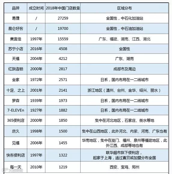 店铺数量上,最能给7-ELEVEn们带来威胁的是美宜佳。这家1997年发家于东莞的便利店品牌,截至2018年10月,门店数已经突破15000家,仅次于石油系的“易捷”和“昆仑好客”,可怕的是其现在还以每个月新增300-400家门店的数目持续增长中。