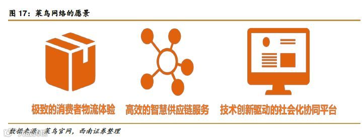核心在于提供物流服务。主要是指菜鸟网络。这项业务主要起到连接客户与供应商,增强底层飞轮的作用,是推动飞轮加速转动的另一核心业务。随着消费者对商品服务质量要求的日益提高,更加注重线上与线下的深度融合,在此背景下,菜鸟网络作为以用户体验为核心的新时代物流网络,为底层飞轮提供了有力支撑。