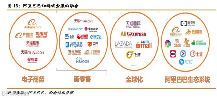 核心在于提供金融服务。主要指蚂蚁金服。这是2B端的重要业务,也是推动飞轮加速转动的核心业务之一。围绕提升用户体验,阿里巴巴引入支付宝来为支付环节赋能。在此过程中,支付环节产生的海量数据可以为信用系统赋能,进而衍生出融资、投资等其他业务需求,导致客户流量的增加和产品需求上的相互依赖性。