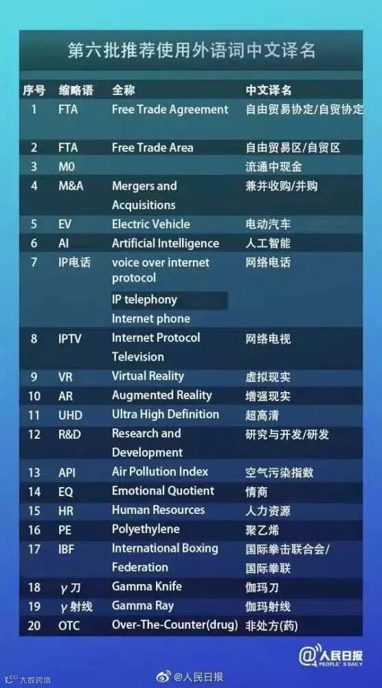 近日,教育部公布了第八批向社会推荐使用的外语词中文译名,APP、NFC、MPA……这些外语词、缩略词都有标准中文译名啦!
