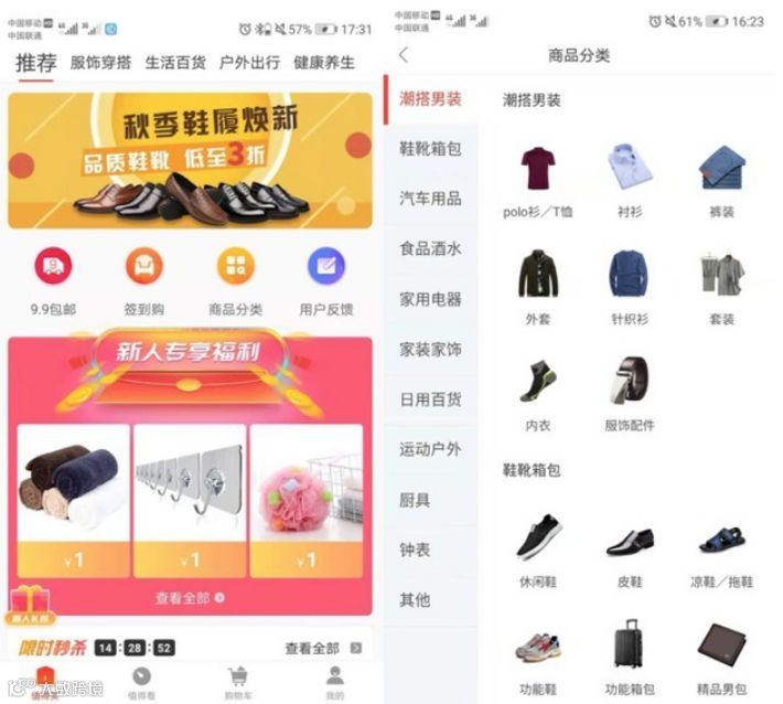 10月15日,每日经济新闻(微信号:nbdnews)记者下载并试用“值点”App。在推荐页面,“9.9包邮”、“低至3折”、“新人专享福利(1元)”等字样惹人注意。“商品分类”入口下,则具体包含潮搭男装、鞋靴箱包、汽车用品等11个品类。