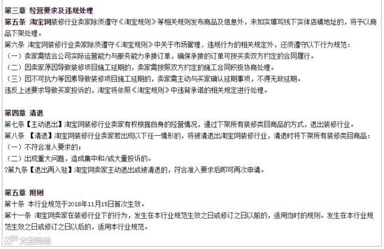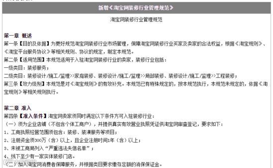 4、装修相关类目管控要求从原《淘宝网生活服务市场管理规范》中删除。
