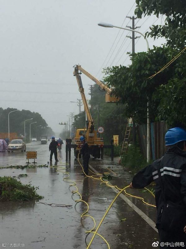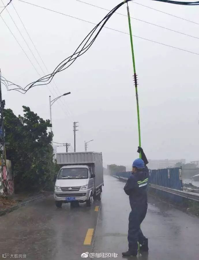 风雨交加的佛山,供电部门“托举哥”,在暴风雨中支撑起导线近两个小时。