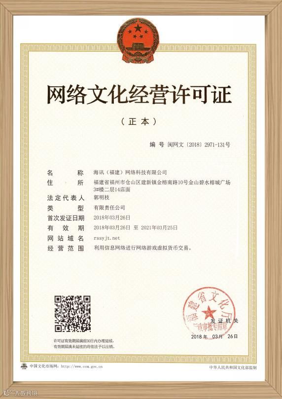 我公司同时获得福建省文化厅的审批,发行的网络虚拟货币(积分)的交易。