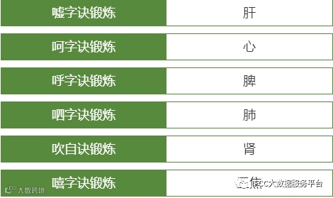 该套气功共有6个动作,(我们会在日后的推送中陆续为大家奉上练习教程),这六个动作与五脏有相对应的调养关系: