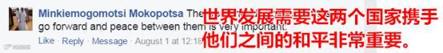 博茨瓦纳网友:世界发展需要这两个国家携手,他们之间的和平非常重要。