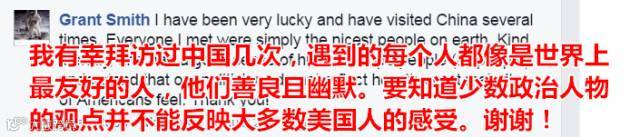 我有幸拜访过中国几次,遇到的每个人都像是世界上最友好的人,他们善良且幽默。要知道少数政治人物的观点并不能反映大多数美国人的感受。谢谢!