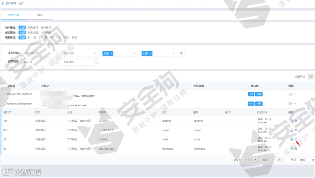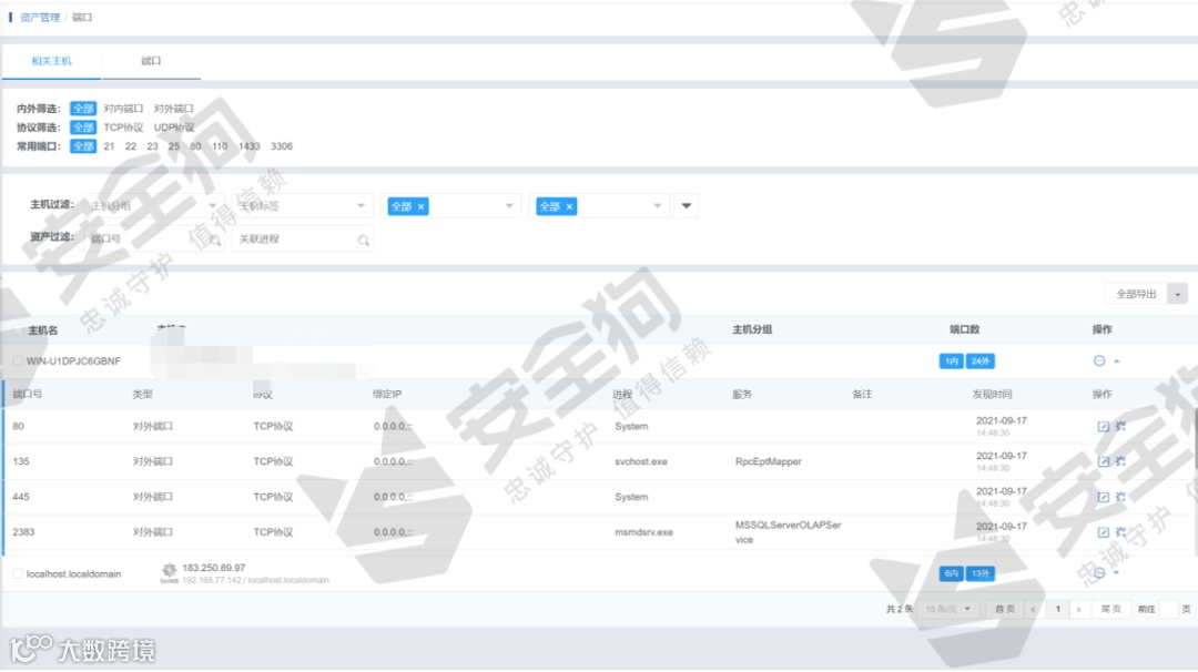 通过云眼-资产管理-端口,可识别主机上的所有端口与相关端口服务。