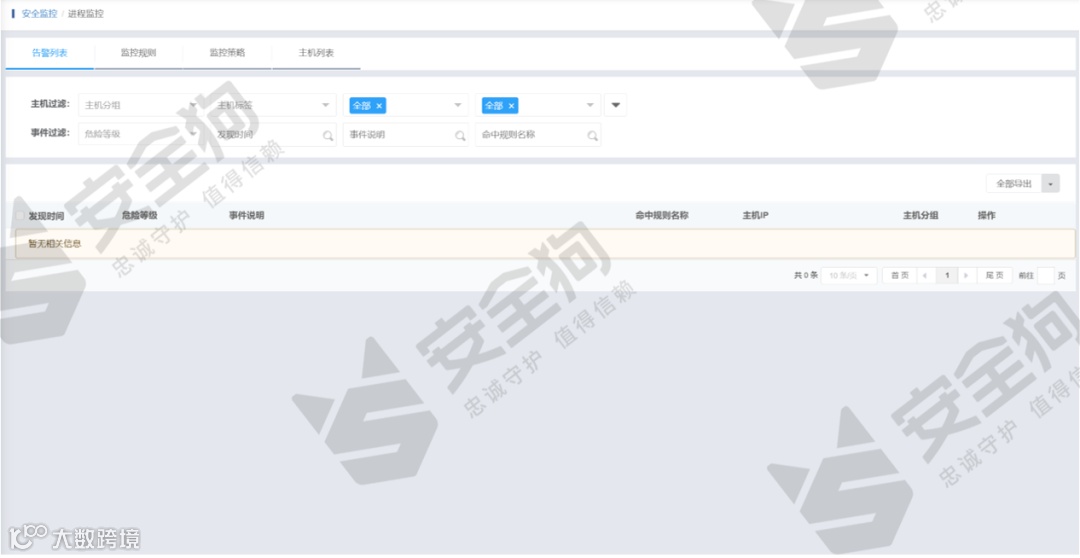 通过云眼-安全监控-进程监控,可识别审计进程的异常情况,并进行相关报警。