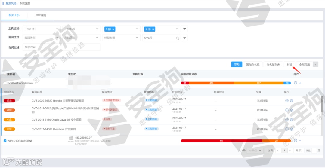 通过云眼-漏洞风险-系统漏洞,可识别操作系统上的所有漏洞,用户可通过安全建议进行整改。