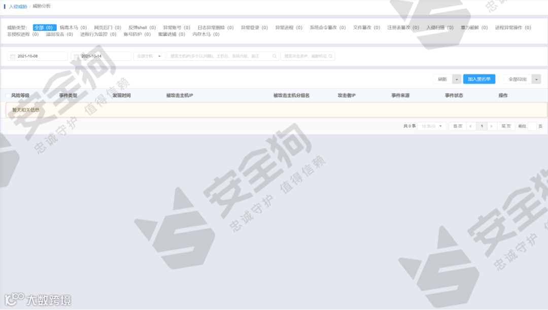 通过云眼-入侵威胁-威胁分析,可识别主机上的所有入侵攻击行为,并进行邮件或短信报警。