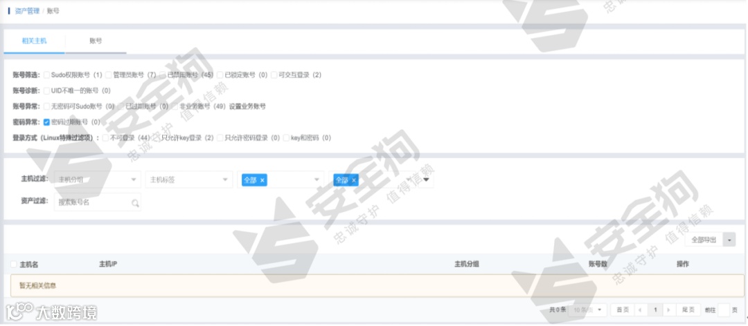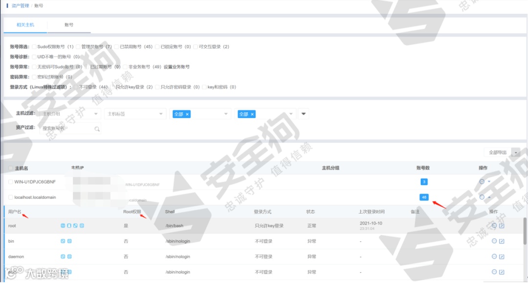 以上内容可通过云眼-资产管理-账户,识别操作系统上所有账户,并识别账户相应权限。