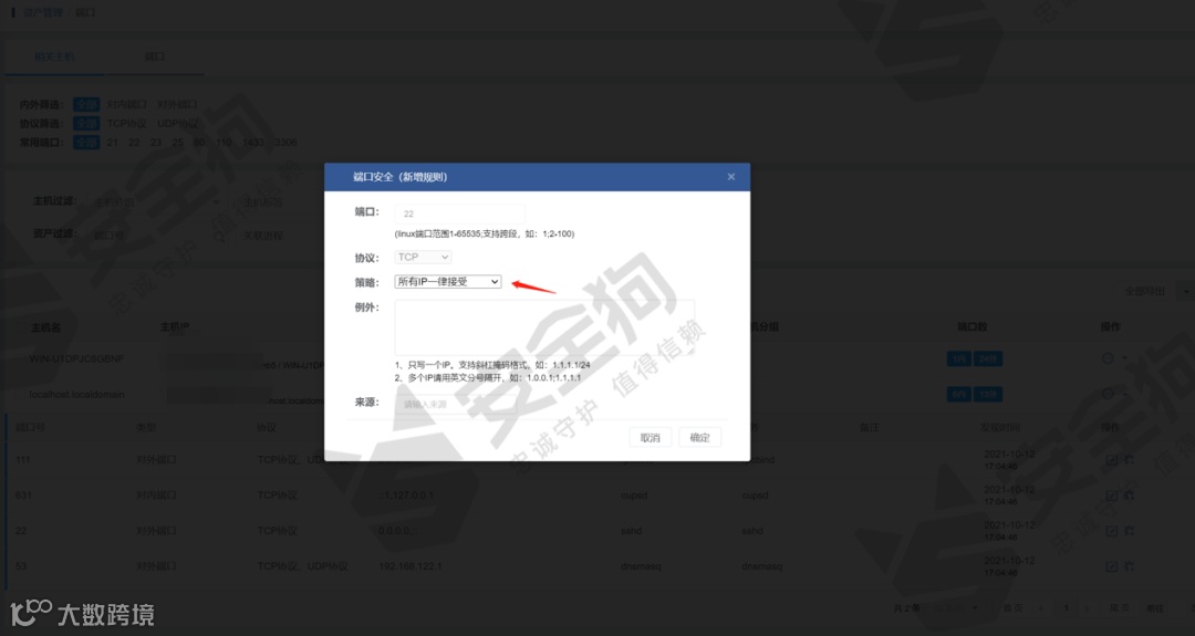 通过云眼-资产管理-端口,可对操作系统上的远程管理端口进行配置,实现远程端口登录限制。