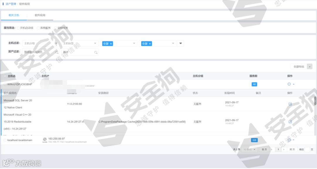 通过云眼-资产管理-软件应用,可识别操作系统上所有安装的应用程序