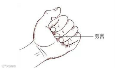 劳宫穴:劳宫穴位于手心部。一手握拳,搓揉另一只手的手心部,直到感到手心微热,再换另一支手,交替进行。