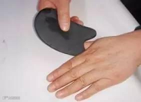 选购一个刮痧板,先用刮痧板的面刮拭手掌,手掌发热后用刮痧板上的凹槽刮拭手指的四面,从根部到指尖,每个方向刮5至10次,能行气通络。同理可运用于刮拭双脚。