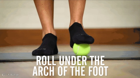 常年腰酸背痛的朋友,可以将网球或高尔夫球放在脚底,用脚趾和足跟缓慢滚两三分钟即可。