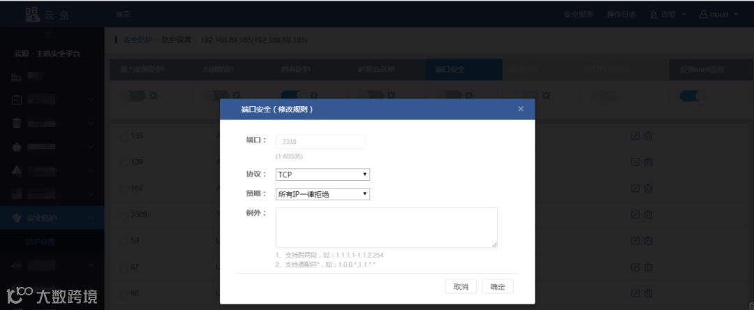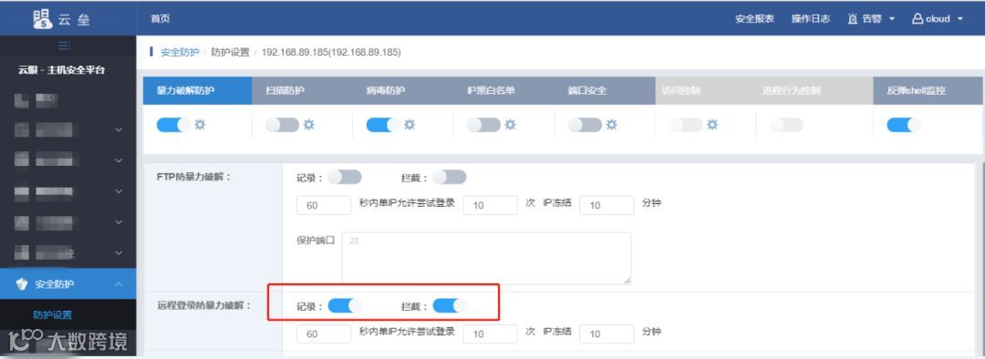 由于本次勒索病毒很可能是利用RDP暴破植入的,可以通过云眼设置RDP防暴破策略。