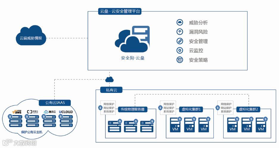 安全狗拥有集安全监测、检测、防御、审计和事件响应于一体的综合性云安全防护平台,可以为云平台管理方和云租户提供从虚拟网络层、虚拟主机层、宿主机层、应用层到数据层的立体式纵深云安全防御,满足平台和租户自身的安全需求和等保合规需求。