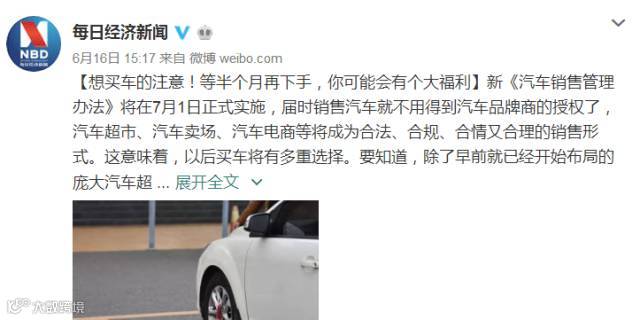 新的《汽车销售管理办法》将于