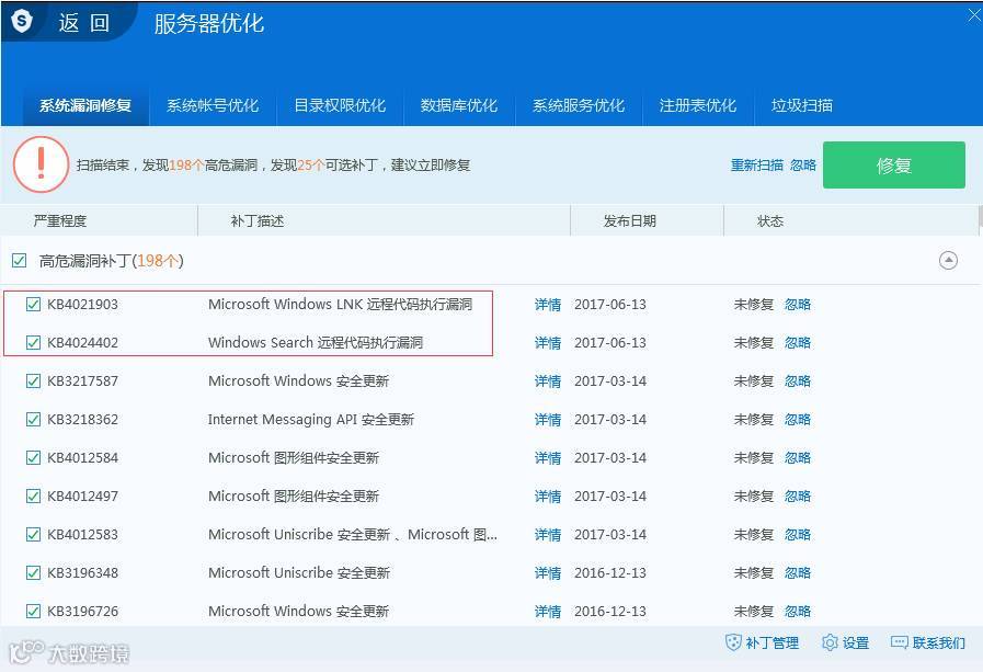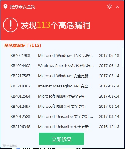 用户除通过官方途径获取补丁外,也可以通过服务器安全狗、云垒、服云平台等方式获取补丁。
