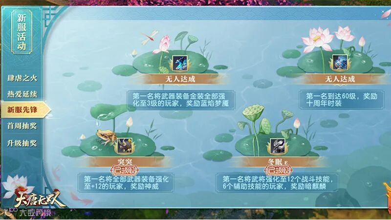 相比于大家群战BOSS的“肆虐之火”活动,“新服先锋”就更为直接了当,只要在新服开启后的限定时间内,率先将自身等级、武器装备强化、金装、武将强化等战力实力以第一人排名拿下的少侠将获得极其珍贵的十周年时装和暗麒麟、蓝焰梦魇等绝世坐骑。