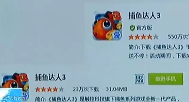 △ 真假“捕鱼达人” ,正版APP的名称下方有“官方版”认证