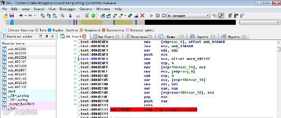 因此要看到payload的核心代码比较困难,这里采用HASHEREZADE在2015年的一篇博文Malware Crypters – the Deceptive First Layer的方法:"cGDgSQZxW8WUVwm.exe"虽然被Crypters加密伪装起来,但是在执行的某一个过程会将真正的payload2从内存中解密出来,如果选择合适的时间dump的话,那么dump下来的文件就是解密后的payload2。