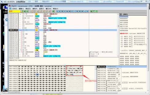 而在默认的情况下,Locky与硬编码的服务器IP进行通信: