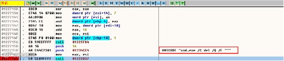 5.最后调用cmd.exe删除"cGDgSQZxW8WUVwm.exe":