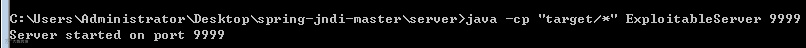 java -cp "target/*" ExploitableServer 9999命令在9999端口起到有漏洞的服务器程序。