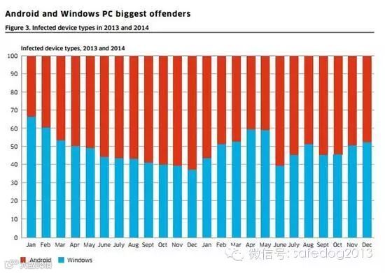 另一方面,在所有恶意软件感染事件中,iPhone和黑莓手机所占比例不到1%。不过新的漏洞,例如去年曝光的“查找我的iPhone”的漏洞,也在被逐渐发现。这意味着iPhone和黑莓手机的安全性并非万无一失。
