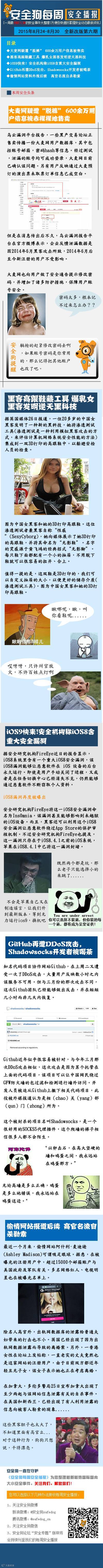 导读:安全播报第六期精彩继续,来和小编一起回顾下上周都发生了哪些安全事件吧~~ 一周安全播报,让安全更有味道!