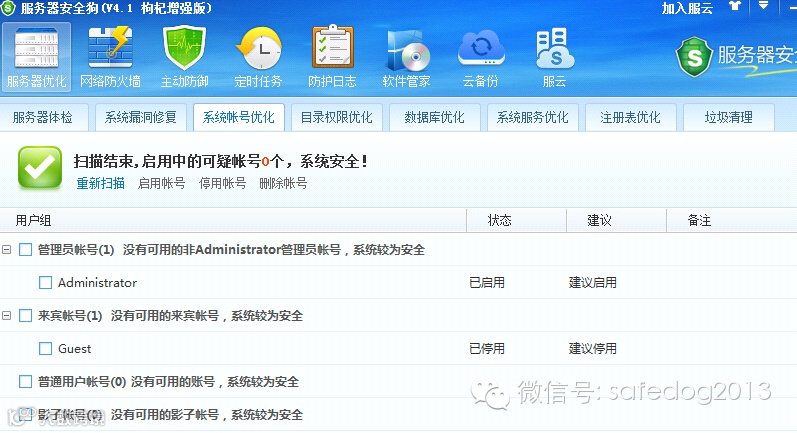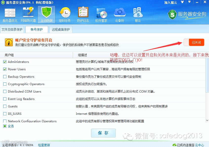 咳咳,好像跑远了,回来回来,回到怎么防止被创建影子账户的问题上来。光删除不禁止创建治标不治本的,然后我发现了它另一个功能:主动防御功能中的账户保护功能可以禁止这一操作!!!