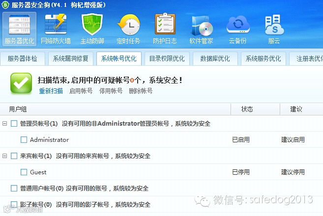 这些操作成功后安装服务器安全狗,安装完成后进行服务器优化下: