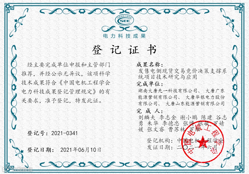 截至目前,工作室累计斩获创新成果奖7项,3项发明专利获受理。其中,2024年12月获得《中国职工技术协会职工技术创新成果一等奖》与中国电力企业联合会电力创新奖二等奖,同年11月获得《大唐集团公司2024年度软科学研究优秀成果三等奖》,同期获长沙市“星城杯”首届职工技术创新 (研发) 大赛天心赛区决赛三等奖;2023年6月经中电联鉴定,产品整体达国际先进水平,成本预测领域更是跻身国际领先;2021年先后获得《全国能源化学地质系统优秀职工技术创新成果三等奖》《湖南省电机工程学会技术创新三等奖》。