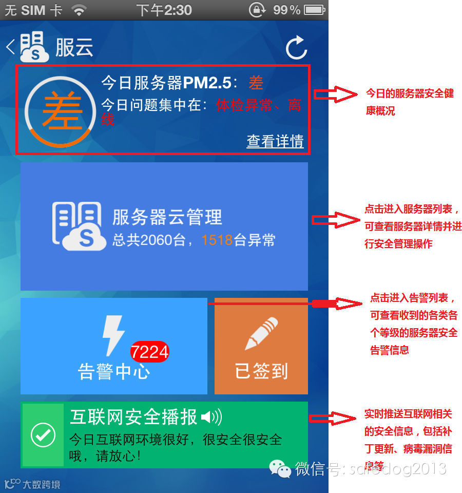 二、 登录服云后,即可通过首页快速的查看到所有服务器的总体安全健康概况。