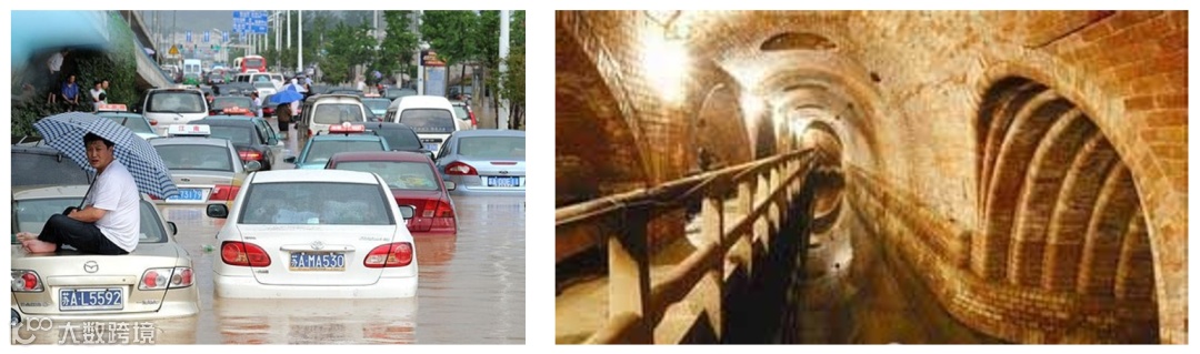 我给大家看一张对比图,同样的中国城市,为何有的城市一到雨季就变成出去看海,而青岛的老城区,德国人100多年前建的,再大的洪水都没淹过。