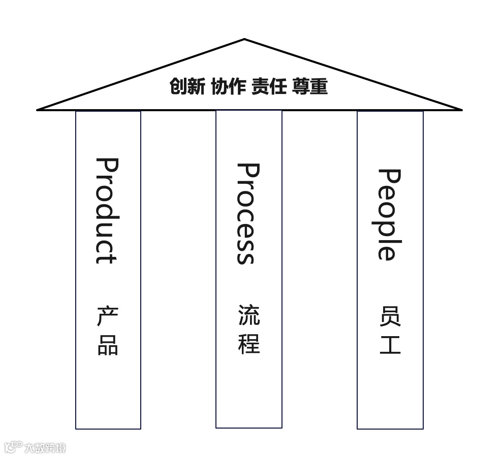 英飞凌的一句话message,就是它企业价值观的八个字:创新、协作、责任、尊重。然后构建这个Message House的三个支柱,分别是 Product(产品),Process(流程)和People(员工)。