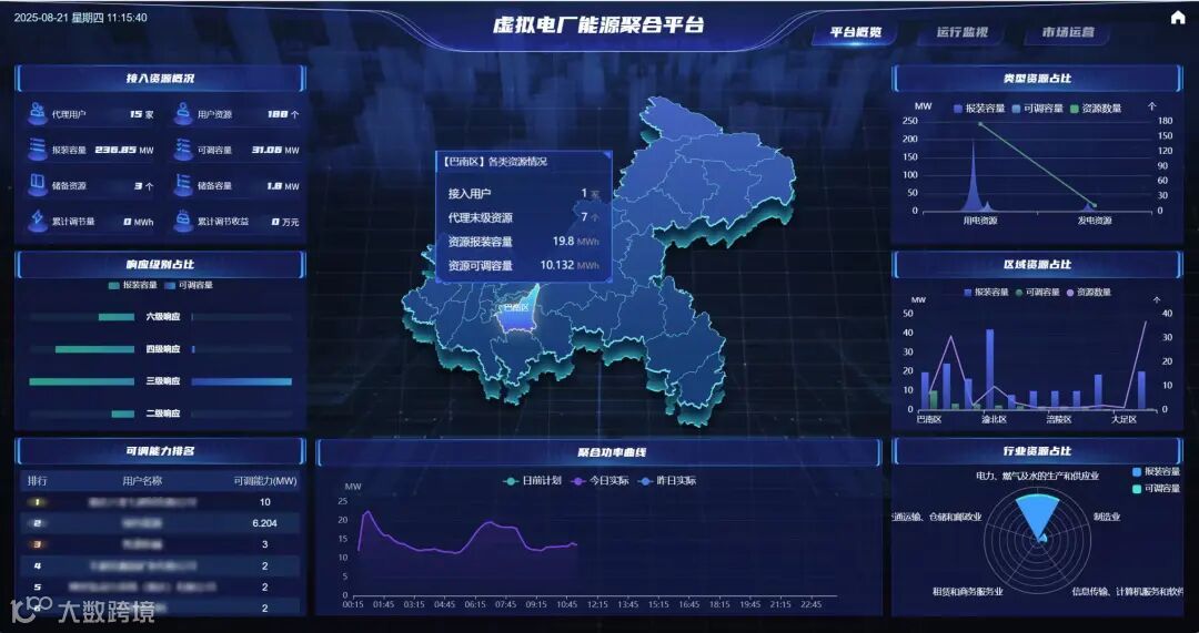 8月,正值重庆市夏季用电高峰关键时刻,数科科源参与建设的重庆大唐虚拟电厂成功通过虚拟电厂能力校核,并配合重庆市电力负荷管理中心顺利完成2025年首次需求侧响应,助力大唐重庆分公司坚决扛牢迎峰度夏电力保供责任。