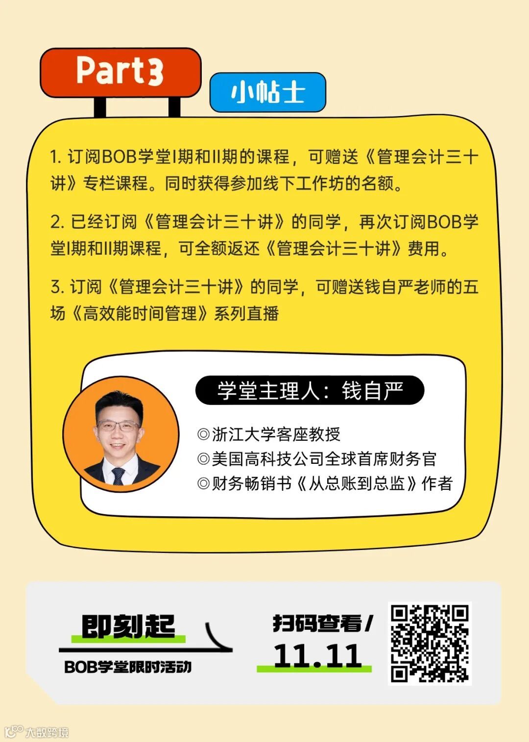 随着秋风送爽,BOB学堂的双11特别活动也如期而至。期待在这个收获的季节里,与大家一起,和钱老师同行,共赴成长之旅。
