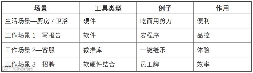根据工具常有的便利、品控、体验、效率等作用,我列了四个场景,让大家分组讨论并共创一个工具设计方案。