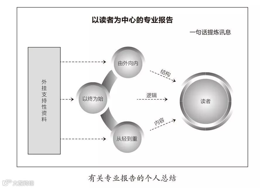 要把一个主题表达清楚,结构最重要。应当是由粗到细,由大到小。在起草一个报告的时候,第一步不是动笔就写,而是先化时间设计结构,比如分哪几个部分来讲,每个部分又需要哪些支持性要点,数据图表又该在什么地方作为辅助材料切入?