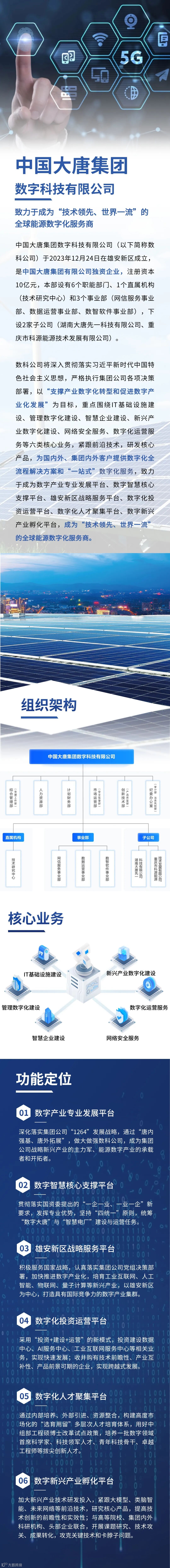中国大唐数科公司致力于成为集团公司数字产业专业发展平台、数字智慧核心支撑平台、雄安新区战略服务平台、数字化投资运营平台、数字化人才聚集平台、数字新兴产业孵化平台,成为“技术领先、世界一流”的全球能源数字化服务商。